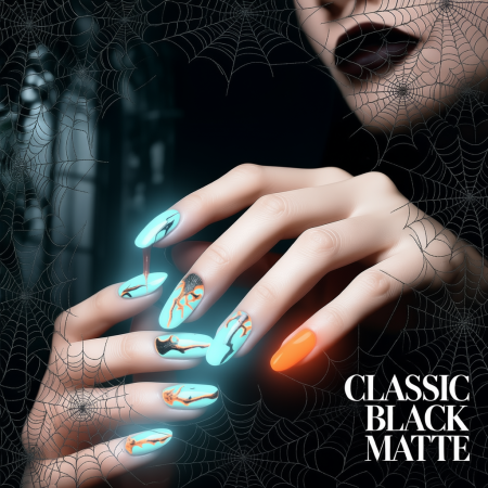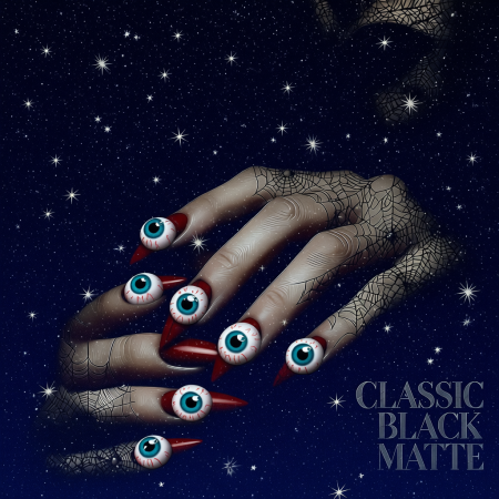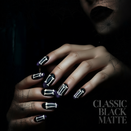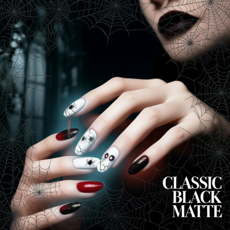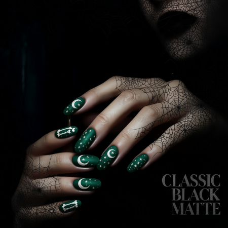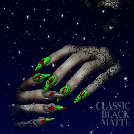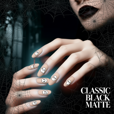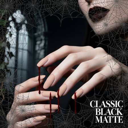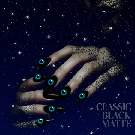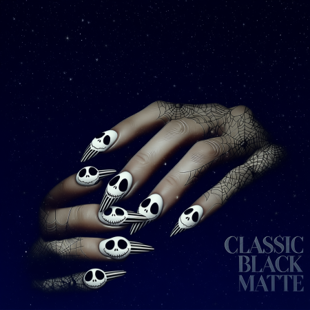 Sleek, simple, and mysterious. Matte black nails go with any costume โ from a witch to a vampire.
