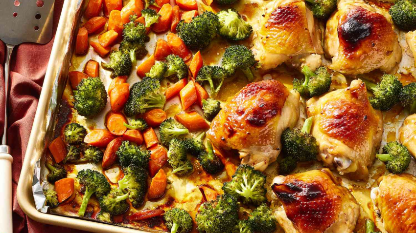 https://www.eatingwell.com/thmb/-KfYhzkoC5PKdUecaxv0jGHpCr4%3D/1500x0/filters%3Ano_upscale%28%29%3Amax_bytes%28150000%29%3Astrip_icc%28%29/276817-honey-garlic-chicken-thighs-carrots-broccoli-beauty-1-9e49a8c112ee498cbd1249c169320354.jpg